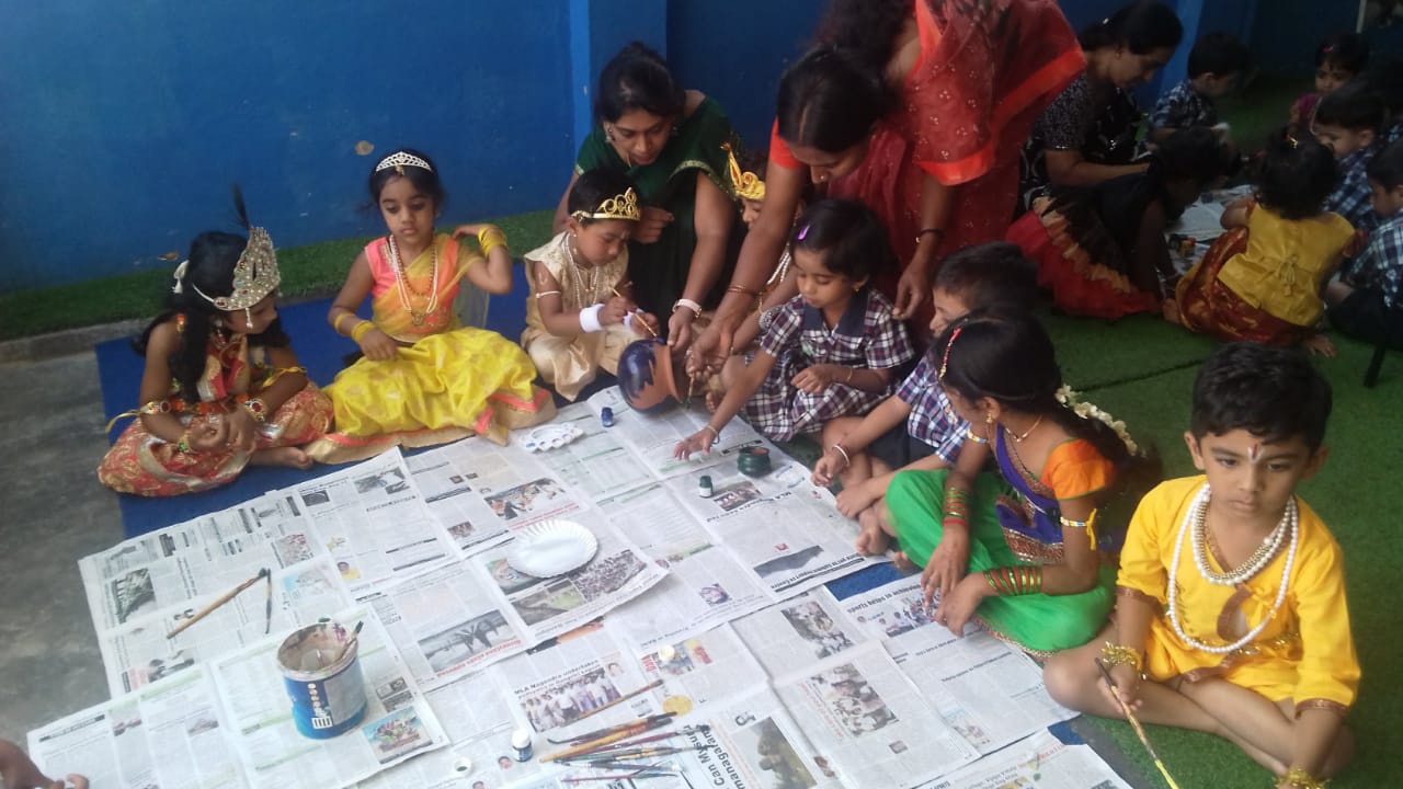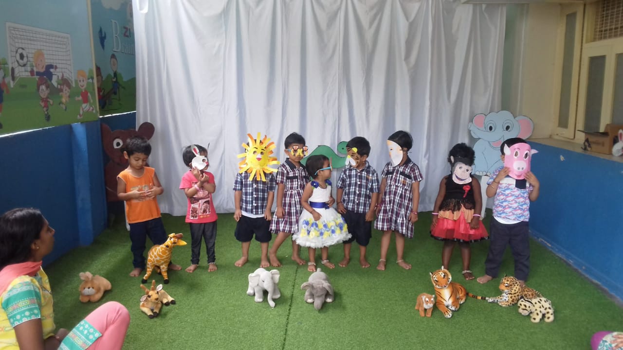 Based on our experience, research and philosophy, our curriculum integrates both teacher led-structured learning and emergent curriculum to foster holistic development of your child. Emergent curriculum is built on our teacher’s observation of your child’s interest, capabilities and learning trajectory to make learning more meaningful. Our curriculum is designed to stimulate curiosity and thinking; improve communication of their thoughts and feelings; improve pre-math and pre-literacy skills; nurture independence and self-confidence , We give special importance to English reading skills and Science domains. To make learning fun and interesting, we involve projects based on social, environment, science and cultural themes, expressed in the form of drawing, crafts, creative play, song, dance, puppet show and storytelling.