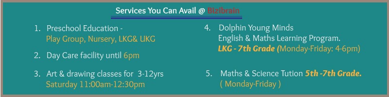 Our passion for education led us to start this preparatory school. Having spent over fifteen years in America, we got exposed to best educational philosophies and learnt research-proven contemporary learning methods for early childhood education. Research has shown that early childhood (2.5- to 6-yrs old) education has tremendous positive impact on child’s development, cognition, independence, confidence, and most importantly, future learning abilities. At BiziBrain, we are cognizant of the fact that every child is different and learns differently and therefore, our curriculum fosters CARING and LEARNING to achieve holistic development of your child.
